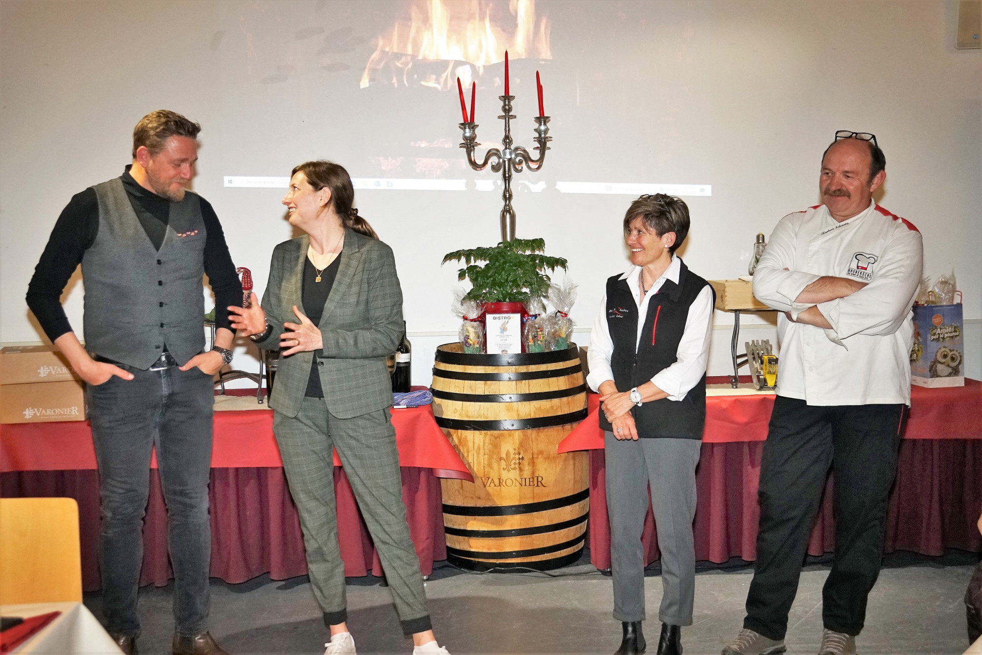 Die Gäste brauchten ihr Kommen nicht zu bereuen, wurden sie durch den Sternekoch doch mit auserlesenen Tartarvariationen, exzellenter Weissweinsuppe mit Trockenfleischstreifchen, einem Duo von Kalb und Lamm aus den Walliser Alpen mit exquisiten Beilagen sowie einem kreativen Dessert aus Birnen-Halbgefrorenem, einem im Kern flüssigen Schokoladenkuchen, Schokoladenmousse und karamellisierten Birnen und Nüssen verwöhnt. Auf die einzelnen Leckereien abgestimmte Weine rundeten das Geschmackserlebnis ab: Varenheit Schaumwein als Apéro, dann Chardonnay Gold 2020, Pinot Blanc Gold 2020, Merlot Barrique Gold 2020 zum Hauptgang sowie zum Schluss einen Avarone 2020 Barrique als Begleitung zum Dessert.