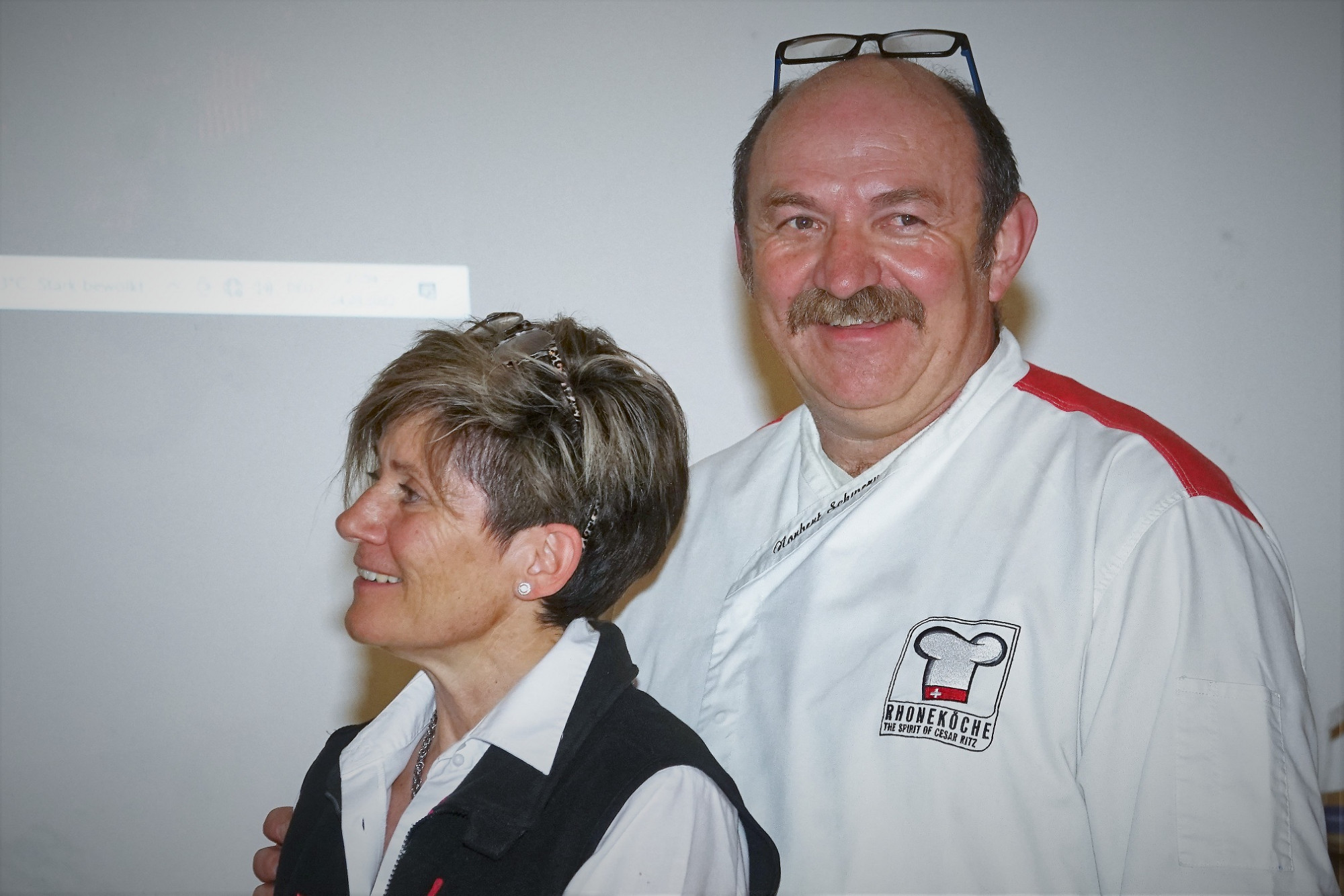 Andy Varonier war bei Sion, in Genf und dann als Torhütertrainer in Dänemark lange Fussballprofi, ehe er das Weingut in Varens vor ein paar Jahren von seinem Grossvater übernahm und ist seither erfolgreich als Winzer unterwegs ist. Seit zwei Jahren tritt der passionierte Önologe als Sponsor der VIP-Lounge im Eizmoos in Erscheinung und hat sich auch in der Region einen ausgezeichneten Ruf als Winzer geschaffen. Sternekoch Norbert Schwery lebt seine Passion heute als Gastkoch. Neben der Silbermedaille an olympischen Kochwettbewerben gewann er Gold an IGEHO 2007 und an der ZAGG 2006. Sie Beide zauberten den Gästen ein eindrückliches Menü auf die Teller, ergänzt durch Spitzenweine der Cave Varonier. Unterstützt wurden die Beiden durch Lokalmatador Didi Mösch und seinem Team, seines Zeichen Betreiber des Bistros 1910 und ehemaliger internationaler Servicefachmann, sowie von der Ehefrau des Spitzenkochs.